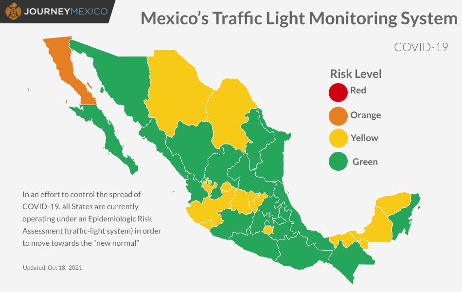 In an effort to control the spread of COVID-19, the Mexican federal government implemented a four-color “traffic light” monitoring system to alert residents and foreign visitors to the epidemiological risks in each of the country’s 32 states and provide guidance on restrictions on certain activities.