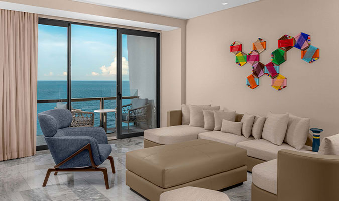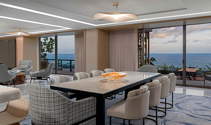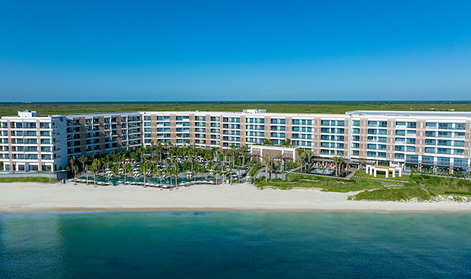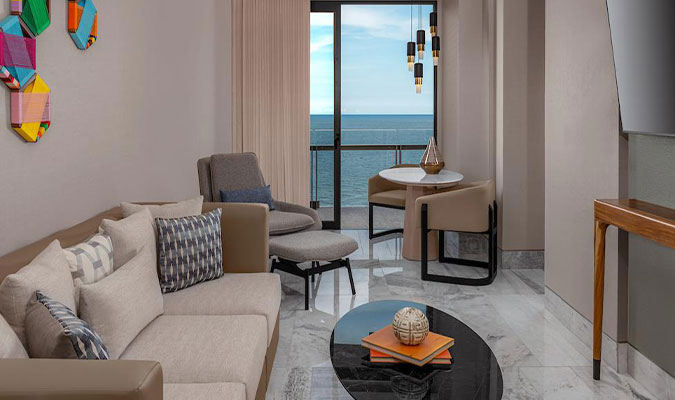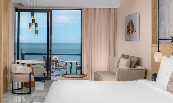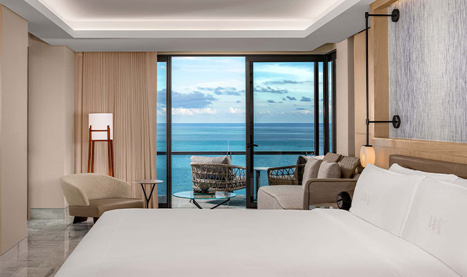 Each of the 173 rooms and suites is ocean-facing, featuring floor-to-ceiling windows, soaking tubs, and private plunge pools – perfect for sunrise coffees or starlit dips. Guests can unwind in the striking infinity pools, explore the secluded white-sand beach, or indulge in elevated Mexican cuisine and seafood at one of the five restaurants and bars. The expansive spa draws on Mayan healing traditions, offering holistic treatments in a deeply serene setting.