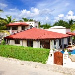 This lovely Mediterranean, 5,000 sq ft home, sits across the street from one of the most beautiful beaches of the Riviera Maya in a private resort community.